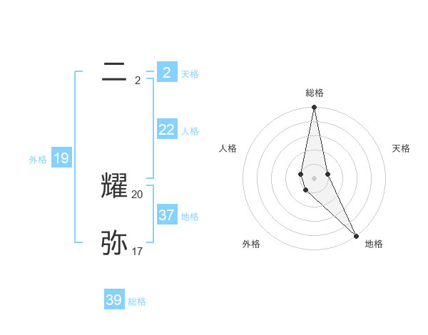 二 耀弥さんの総格は39画の5点!