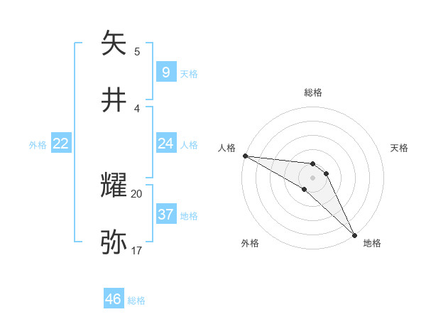 矢井 耀弥さんの地格は37画の5点!