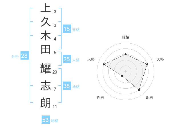 上久木田 耀志朗さんを姓名の画数から五運を鑑定