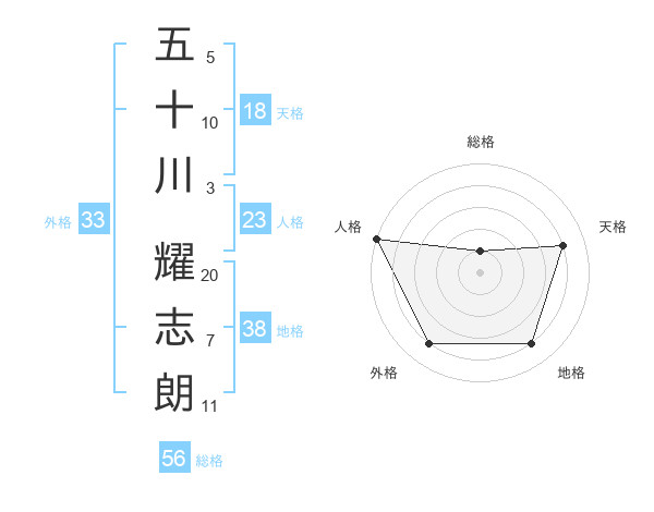 五十川 耀志朗さんを姓名の画数から五運を鑑定