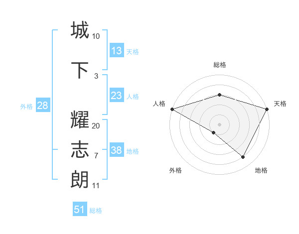 城下 耀志朗さんの総格は51画の3点!