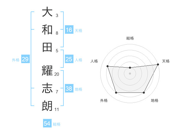 大和田 耀志朗さんを姓名の画数から五運を鑑定
