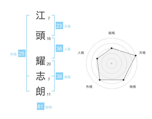 江頭 耀志朗さんを姓名の画数から五運を鑑定