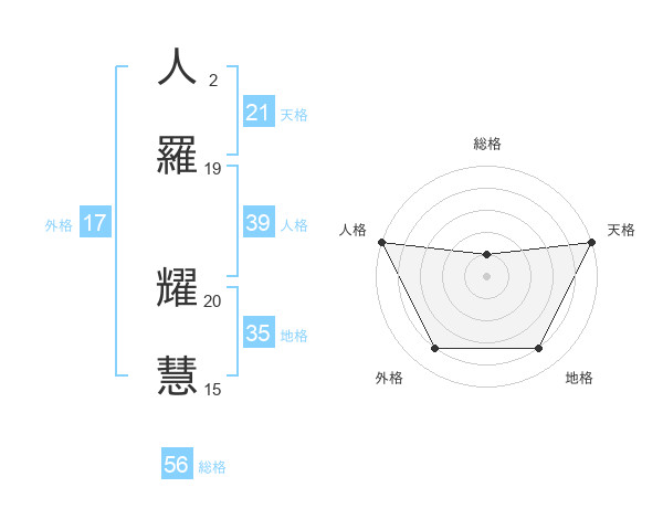 人羅 耀慧さんの人格は39画の5点!