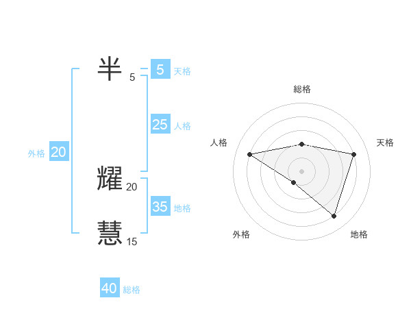 半 耀慧さんの外格は20画の1点!