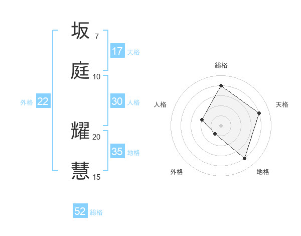 坂庭 耀慧さんの総格は52画の4点!