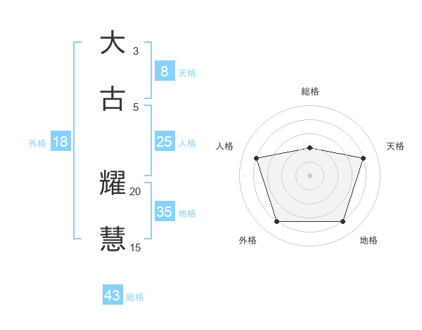 大古 耀慧さんを姓名の画数から五運を鑑定