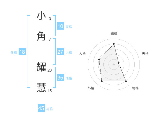 小角 耀慧さんを姓名の画数から五運を鑑定