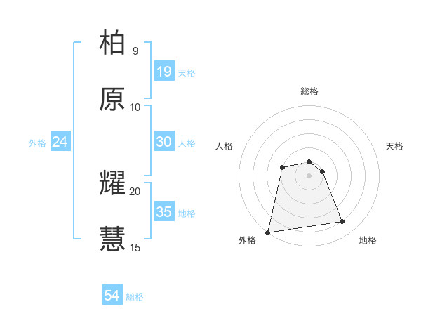 柏原 耀慧さんの外格は24画の5点!