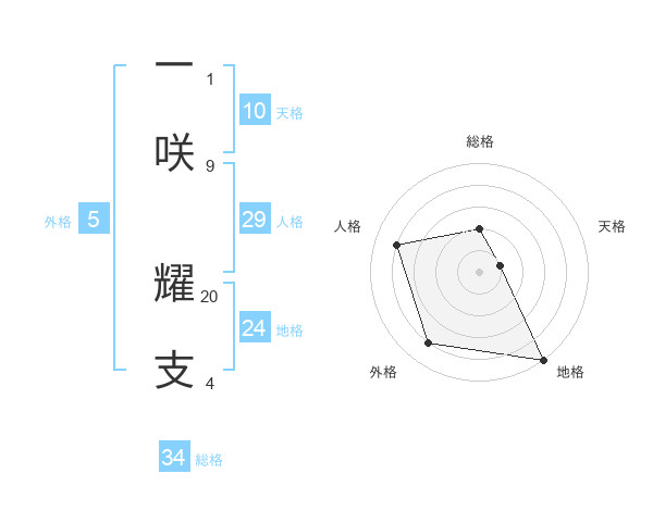 一咲 耀支さんの総格は34画の2点!