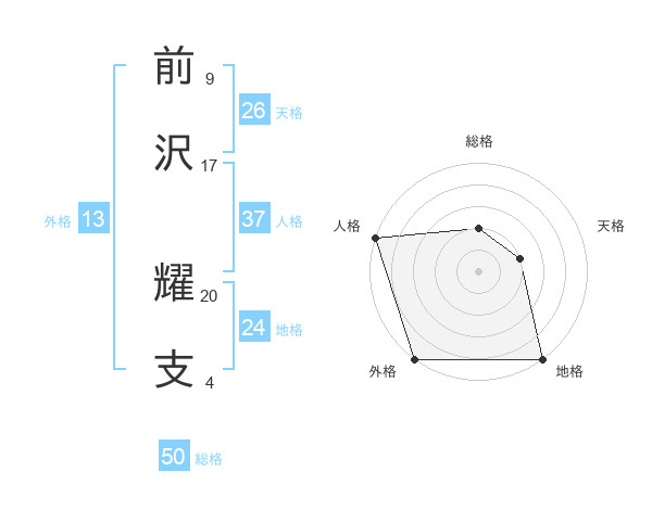 前沢 耀支さんの総格は50画の2点!