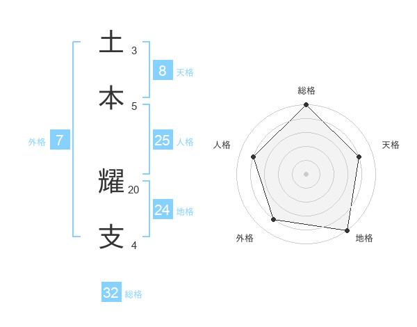 土本 耀支さんの総格は32画の5点!