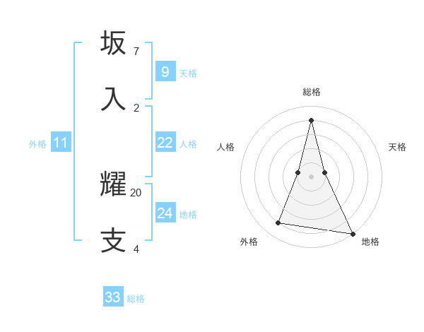 坂入 耀支さんの総格は33画の4点!