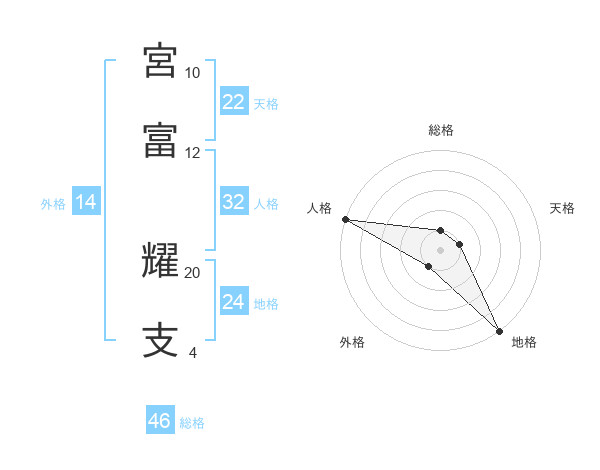宮富 耀支さんの総格は46画の1点!