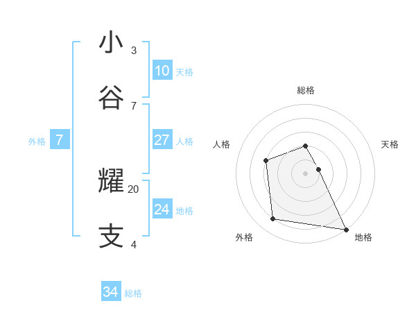 小谷 耀支さんを姓名の画数から五運を鑑定