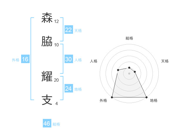 森脇 耀支さんを姓名の画数から五運を鑑定