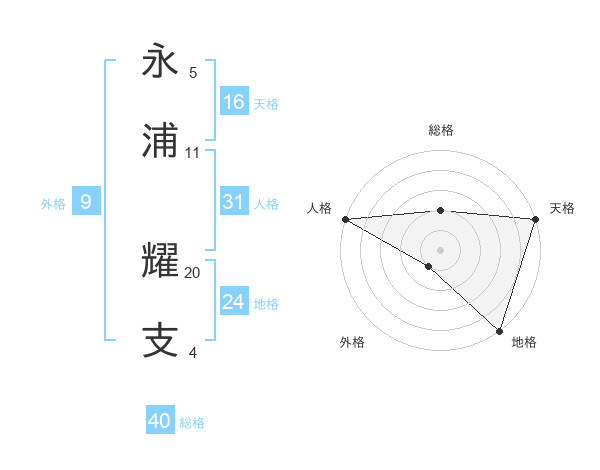 永浦 耀支さんを姓名の画数から五運を鑑定