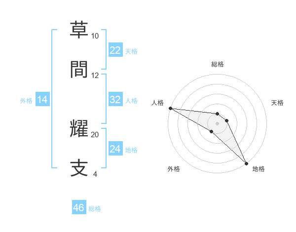 草間 耀支さんの総格は46画の1点!