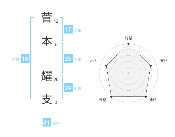 菅本 耀支さんの天格は17画の4点!