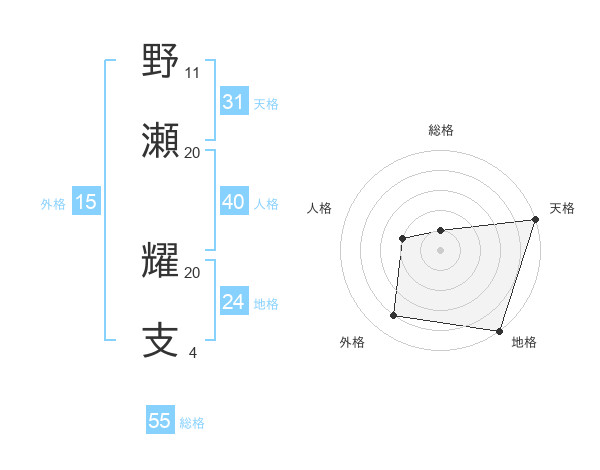野瀬 耀支さんの総格は55画の1点!