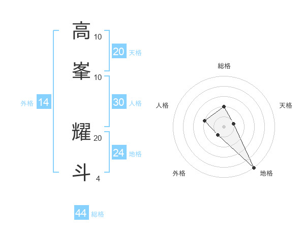 高峯 耀斗さんを姓名の画数から五運を鑑定