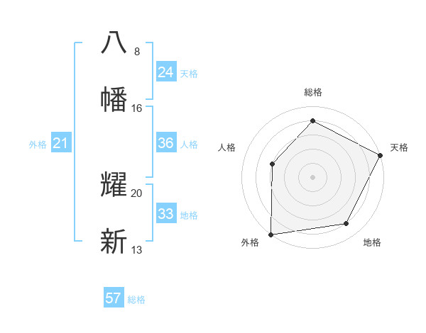八幡 耀新さんの外格は21画の5点!