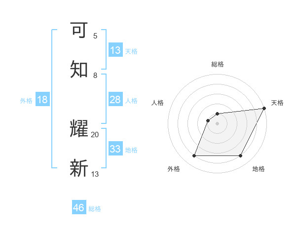 可知 耀新さんの天格は13画の5点!