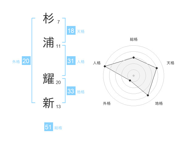 杉浦 耀新さんの総格は51画の3点!