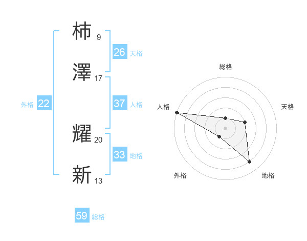 柿澤 耀新さんを姓名の画数から五運を鑑定
