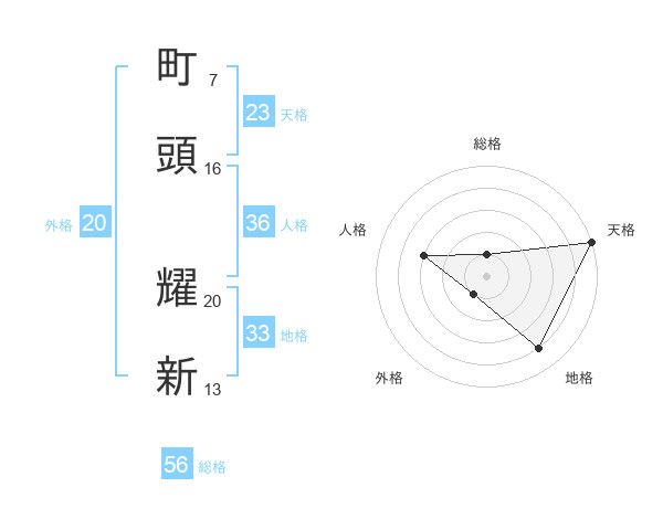 町頭 耀新さんを姓名の画数から五運を鑑定