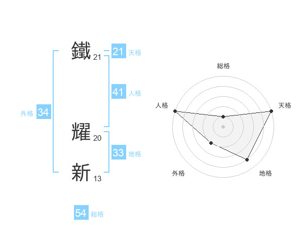 鐵 耀新さんを姓名の画数から五運を鑑定
