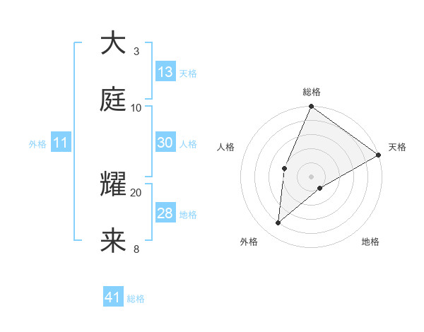 大庭 耀来さんの総格は41画の5点!
