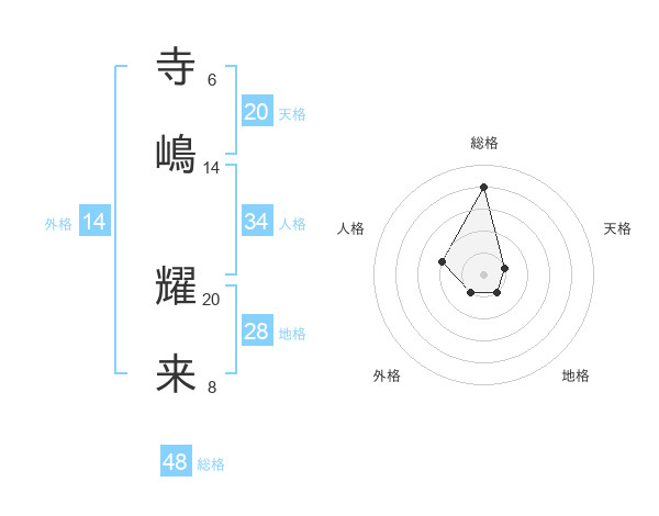 寺嶋 耀来さんの総格は48画の4点!
