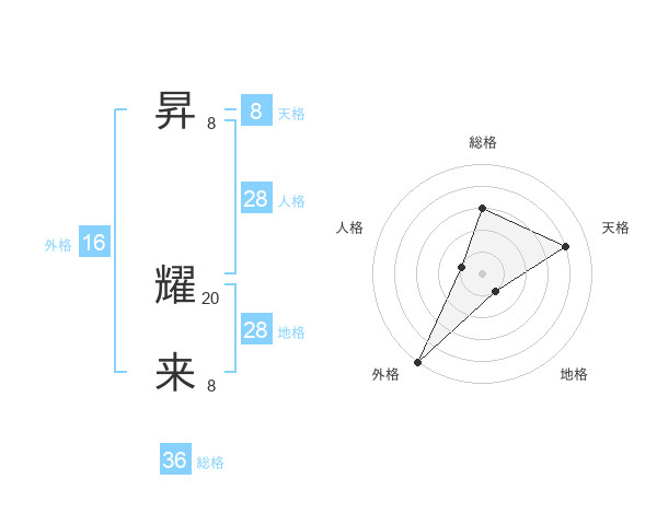 昇 耀来さんの天格は8画の4点!