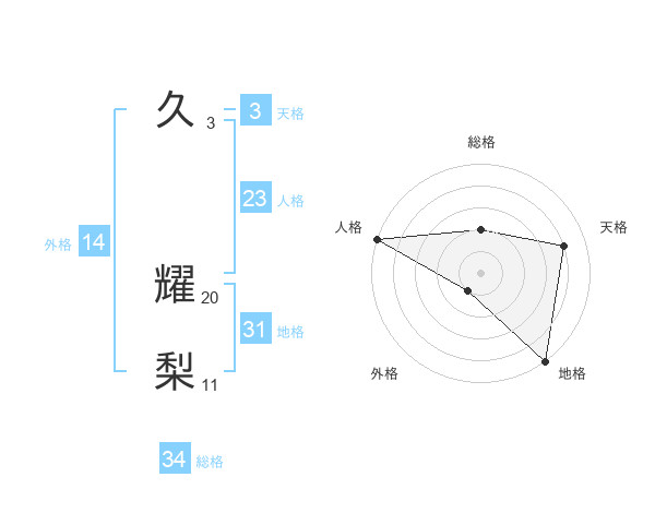久 耀梨さんの総格は34画の2点!