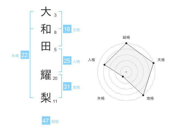 大和田 耀梨さんを姓名の画数から五運を鑑定