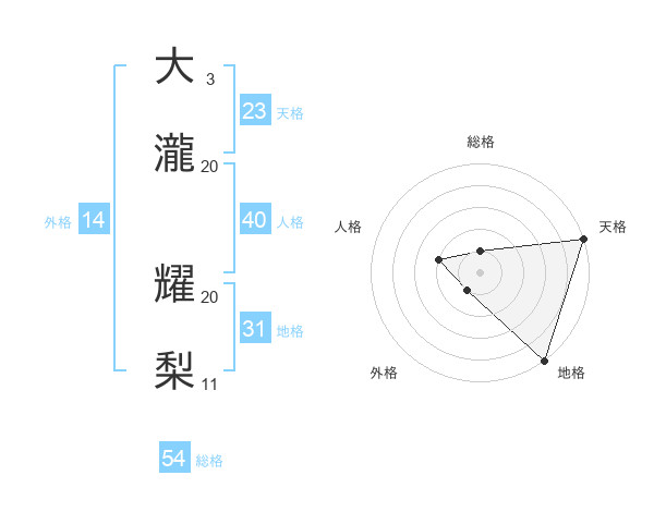 大瀧 耀梨さんを姓名の画数から五運を鑑定