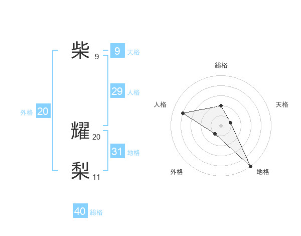 柴 耀梨さんの地格は31画の5点!