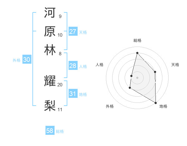 河原林 耀梨さんの総格は58画の4点