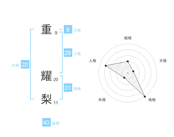 重 耀梨さんの総格は40画の2点!
