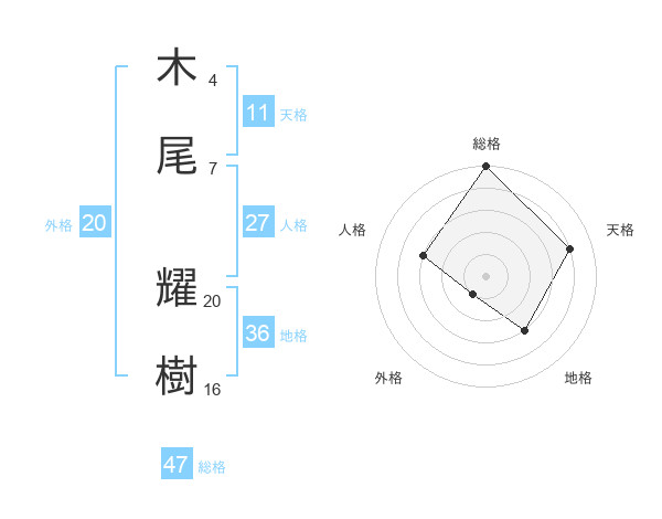 木尾 耀樹さんを姓名の画数から五運を鑑定