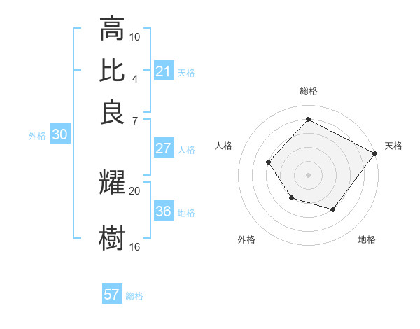 高比良 耀樹さんの総格は57画の4点!