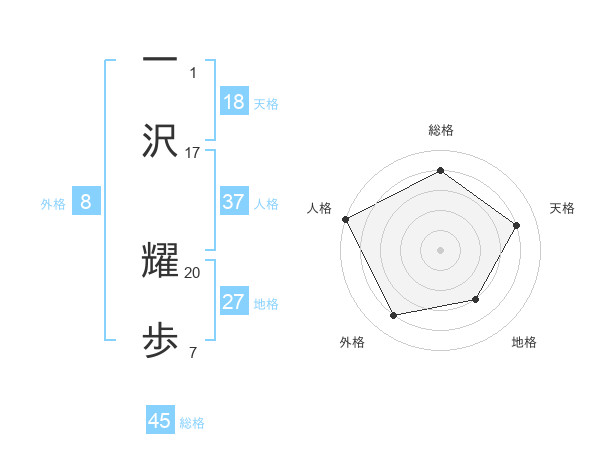 一沢 耀歩さんの総格は45画の4点!