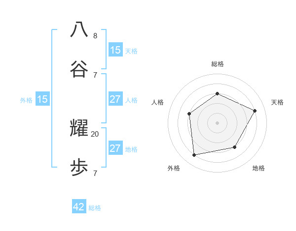 八谷 耀歩さんを姓名の画数から五運を鑑定