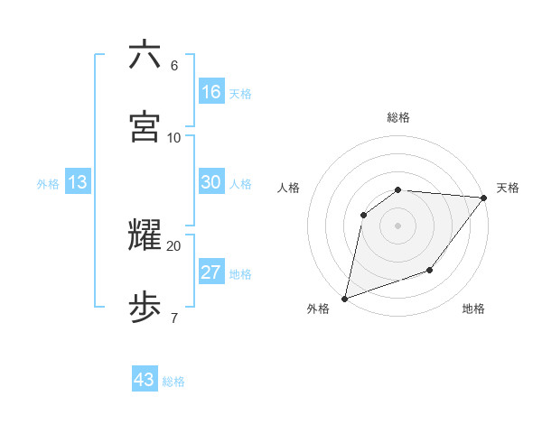 六宮 耀歩さんを姓名の画数から五運を鑑定
