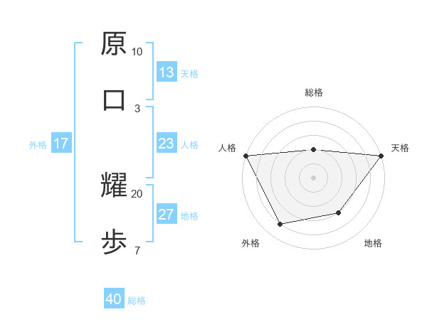 原口 耀歩さんを姓名の画数から五運を鑑定