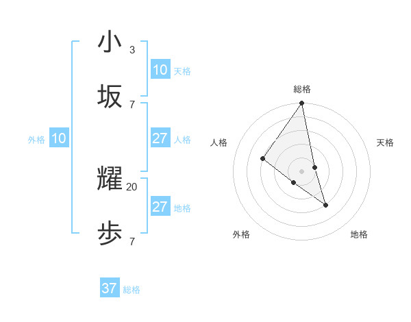 小坂 耀歩さんの総格は37画の5点!