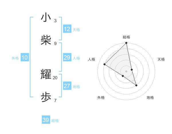 小柴 耀歩さんを姓名の画数から五運を鑑定