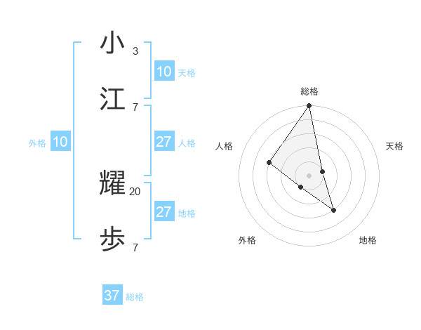 小江 耀歩さんを姓名の画数から五運を鑑定
