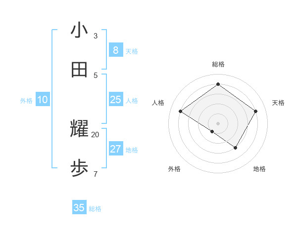 小田 耀歩さんを姓名の画数から五運を鑑定